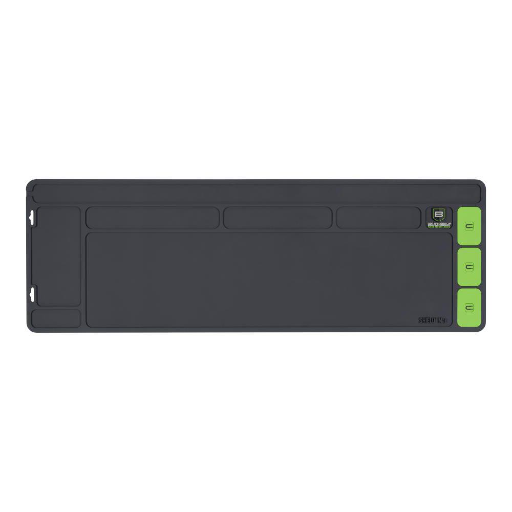 Enhance your firearm maintenance routine with the Breakthrough Clean Technologies SHIELD Mat designed specifically for rifles and shotguns. Made from durable and easy-to-clean material this mat offers a reliable surface for all your cleaning tasks. It features three embedded magnets to secure small parts preventing loss and ensuring organization. The compartments are designed to contain small parts keeping them within reach during maintenance. Sized perfectly for larger firearms the SHIELD Mat provides ample space and functionality. Trust Breakthrough Clean Technologies for superior cleaning accessories.