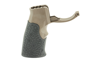 Daniel Defense’s Pistol Grip is designed with ergonomics and controllability in mind. It shares the angle of the classic 1911 pistol for the most natural hand position and comfortable feel. This pistol grip incorporates an oversized trigger guard covering the gap between grip and lower receiver which can wear on the shooters hand and easily accommodates for gloves. Installation is simplified by the fact the integral trigger guard doesn’t require a roll pin so there is a reduced chance of damaging the lower receiver. A soft touch overmolding section enhances grip, wet or dry.